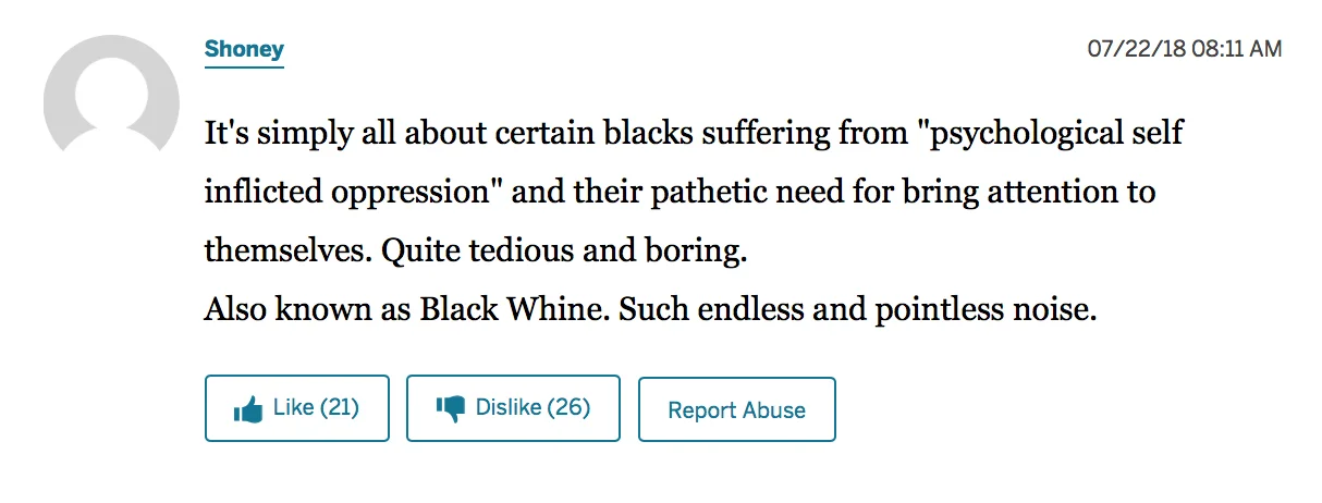Some people say that these are 'bots or Russian trolls looking to gin up controversy and anger. It works. I read the comments and I had to take a shower.